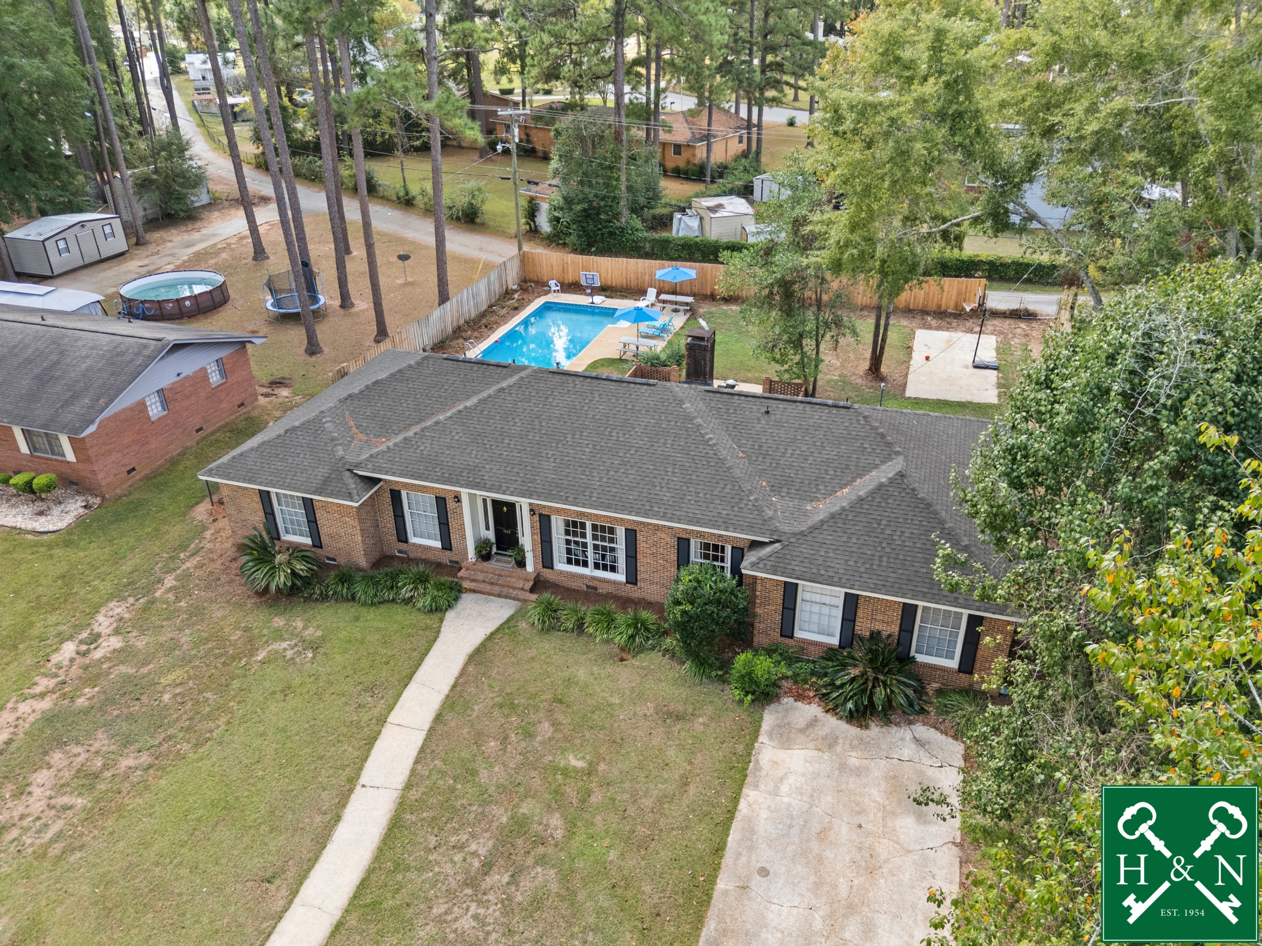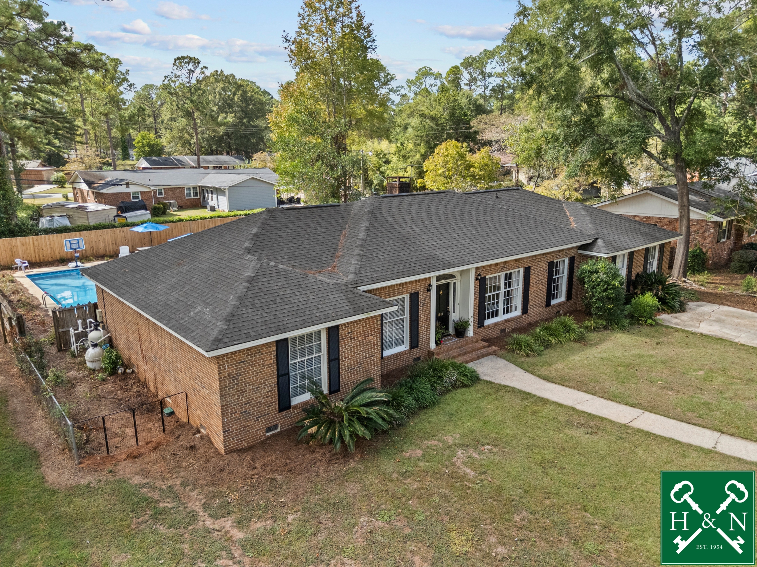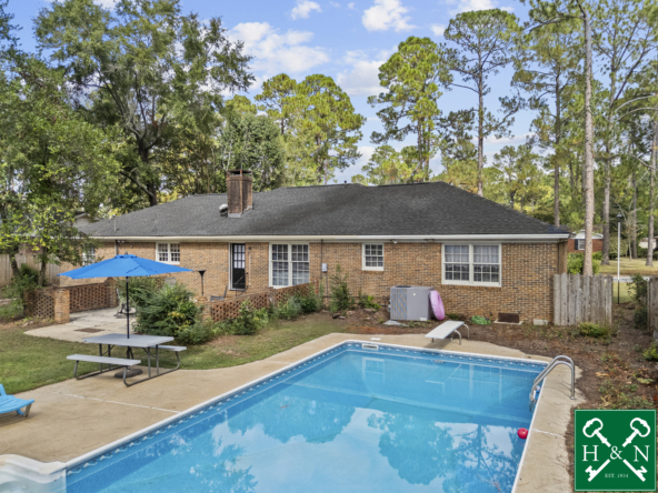 LAKE PARK DREAM LIVING IN THESE 5 BEDROOMS & 3 FULL BATHS WITH A POOL!! We are thrilled to share with you this fantastic home located in the desirable Lake Park neighborhood, conveniently located near schools, local shopping and restaurants! As you walk into the home you will find a formal Living Room with an abundance of space for your family which leads you into the Dining Room. Both rooms are accented with lovely base and crown molding and lots of natural light. Step into the Kitchen and admire the brick and subway tile backsplash, granite counter tops, exposed beamed ceiling, and stainless appliances. The Kitchen sink overlooks the backyard, so you always have a visual of all the fun in the backyard. Walk into the cozy den where you will find this is the perfect place to relax after a long day + the GORGEOUS brick fireplace and exposed wood beams are showstoppers! Then step out onto the BACKYARD OASIS featuring a large open patio and amazing backyard complete with a pool. The backyard is totally privacy fenced. Now for the bedrooms………5 in total. Split designed for more privacy! The Primary is located at the rear of the house and includes two walk-in closets, room for King size bed and private bathroom with tiled shower. Two bedrooms are also spacious and have double closets and hall bathroom access. This bathroom has a double vanity, shower/tub combo and tile flooring. Across the house you will find two additional bedrooms with full bath access. One of the bedrooms is oversized and could make an awesome Bonus room! Conveniently located between these bedrooms and accessible from the Kitchen is the Laundry Room. In additional there is a large storage room which could be used as an office. Other features include: low maintenance brick exterior, Pergo flooring throughout (no carpet!), ceiling fans, plantation blinds, newer roof, newer kitchen appliances, new door hardware, gas logs in Den, tons of storage, newer pool pump, alley access, fenced back yard, poured concrete pad in backyard (basketball court) and it is move-in ready.