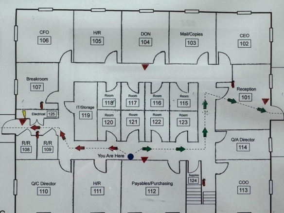 First floor: Reception Office, Break Room, IT / Storage Room, 10 large offices, 10 small offices.