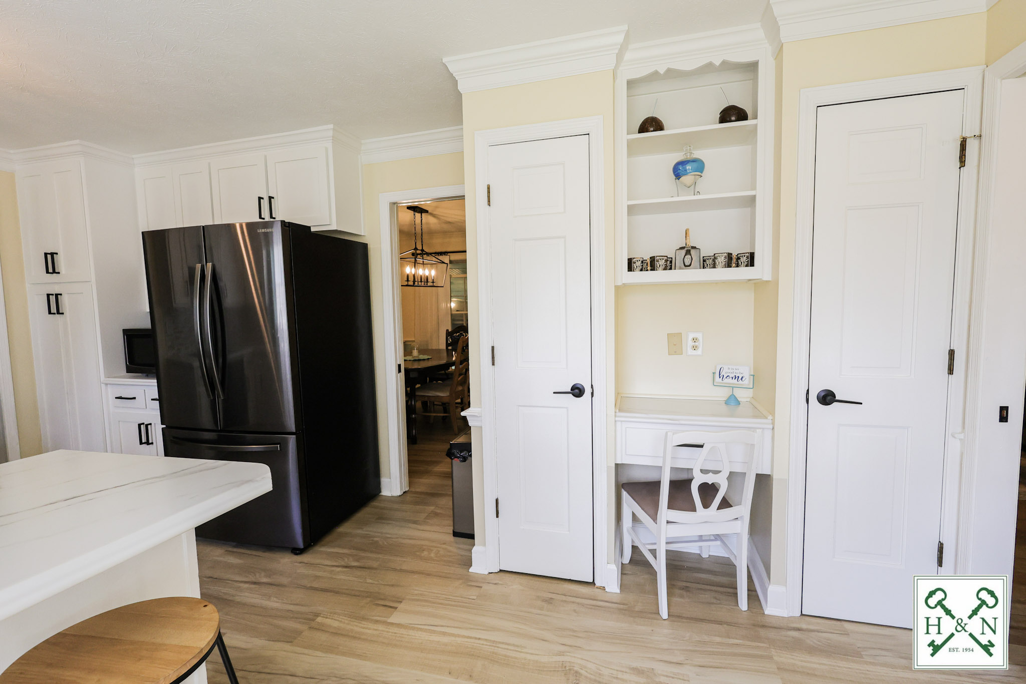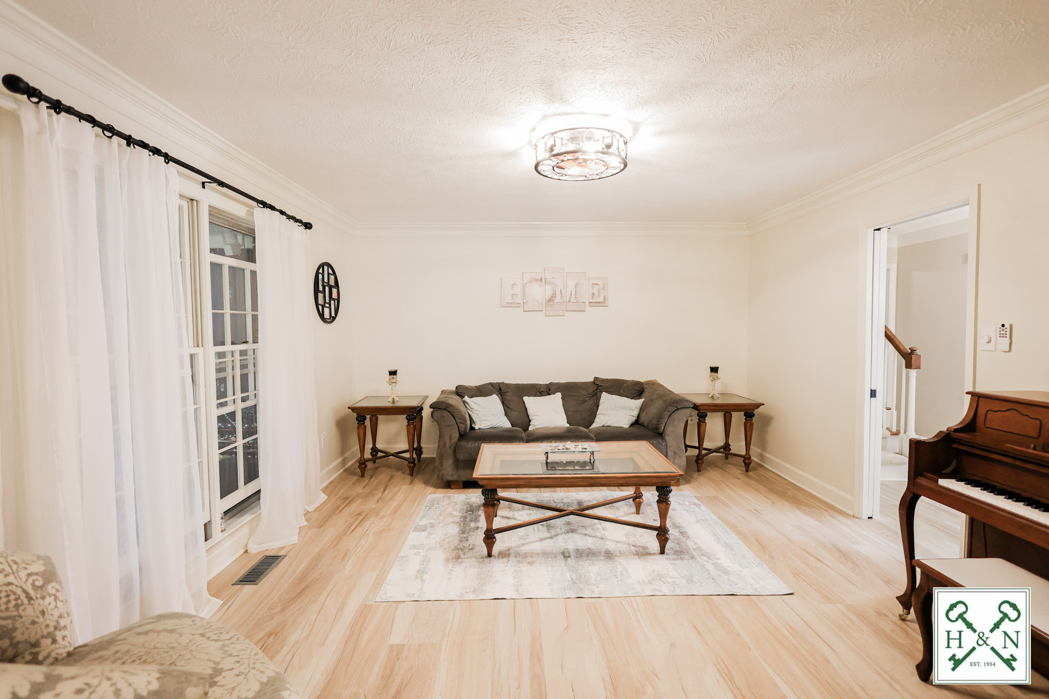 WELCOME HOME TO WESLEY RD! This amazing 5 bedroom, 3.5 Bath home is located in the Doublegate Subdivision and is move-in ready! Features you will love! (1) Updated Flooring (2) NEW lighting (3) Updated eat-in Kitchen with beautiful backsplash, NEW countertops, updated appliances, built-in desk & 2 pantries! (4) Formal Dining Room (5) Formal Living/ Music Room (6) Large Family Room with Vaulted Ceilings, built-ins, brick floor to ceiling fireplace & beam details! WOW! (7) Large Mud/Laundry Room w/ Sink & Half bath & room for drop zone just off the garage entry +Friend side entry! (8) Also on this main level you will find 2 guest bedrooms (one currently used as an office with removable bookshelves), an updated hall bath with new vanity & lighting! + 2 hall closets (9) Spacious Primary Suite w/ Walk-in Closet and private ensuite bath! (10) Upstairs you will find 2 ADDITIONAL Bedrooms and another full bath, plus Walk-in Attic Storage! (11) Just off the Family room is a HUGE Sunroom/ Bonus Room addition! This space is wonderful for homeschooling, playroom, Billard/ man cave, features a kitchenette & a mural of NYC/ twin towers. This space could also be converted to an amazing in-law suite if needed! (12) Outside you will find a privacy fenced yard, firepit area, and a well-established garden with a variety of fruits, vegetables and flowers! The owner has even provided a map! You will have lots of treat’s year around! (13) Brick & Vinyl Exterior for easy maintenance!
