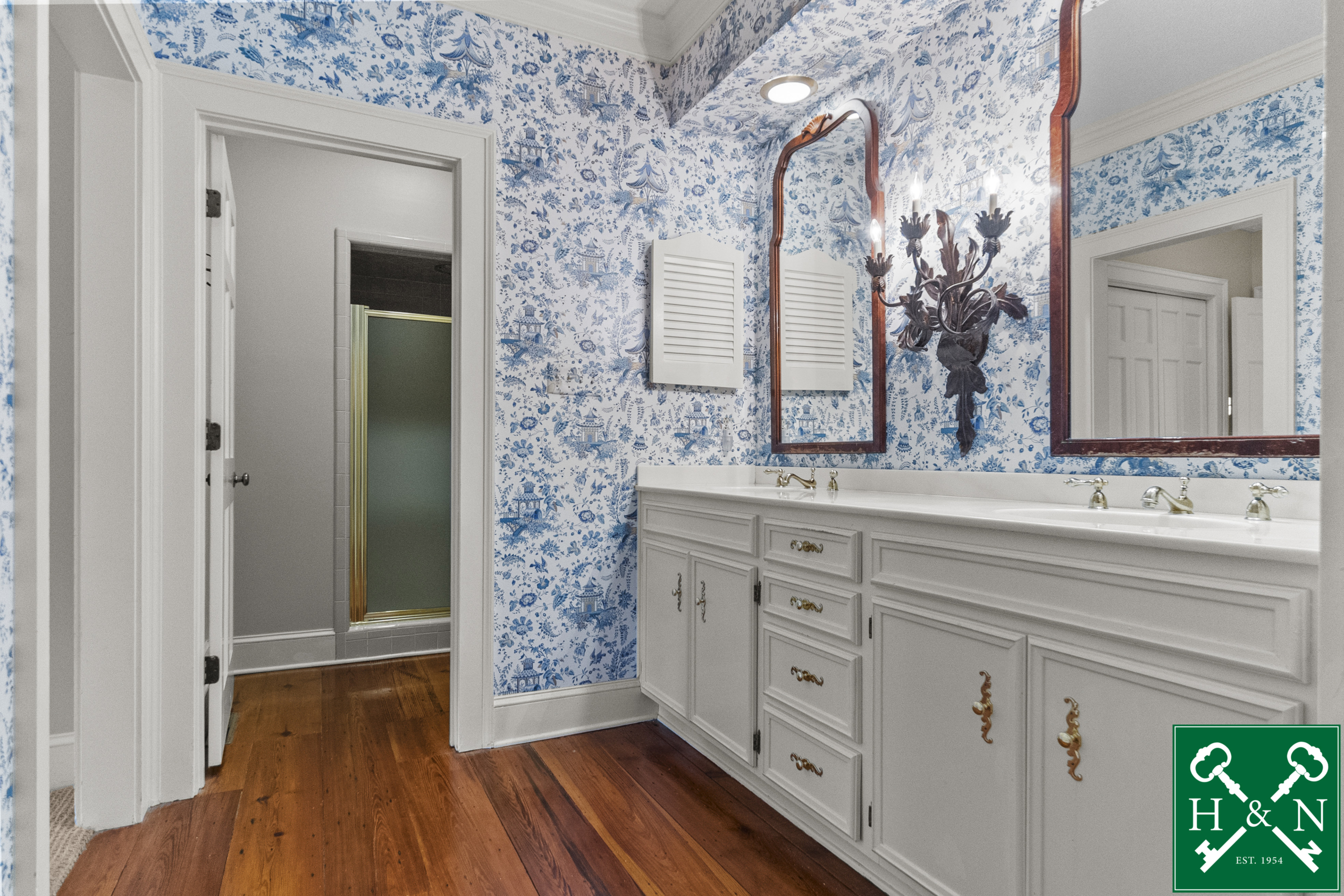 PRICE IMPROVEMENT! Nestled on approximately +/-2.3 private acres in NW Albany’s sought-after Plantation West subdivision, this immaculate 4-bedroom, 3-bathroom home offers over 3,300 square feet of timeless elegance and traditional charm. From the moment you arrive, the classic brick exterior, circular driveway, and beautifully landscaped yard set the tone for a property that’s both refined and welcoming. Inside, you’ll find reclaimed wide plank pine flooring and brick pavers throughout most of the main level, adding warmth and character that modern homes simply can’t replicate. The oversized formal dining room is perfect for hosting large gatherings, while the updated kitchen features Corian countertops, tile backsplash, stainless steel appliances, a built-in desk, and a spacious pantry. The breakfast room is light and bright, accented with a beamed ceiling and grass cloth wallpaper for a touch of Southern sophistication. The great room is expansive and inviting, complete with a gas fireplace, bay window, wet bar, and elegant moldings. Just off the great room, a screened porch offers a peaceful retreat. The mud room includes a laundry sink, recessed freezer space, and access to a charming breezeway. The primary suite is located on the main level and features a sitting area, double vanity, two closets, and a separate tiled shower. Upstairs, three additional bedrooms offer generous space, with one enjoying private bath access and the other two sharing a large hall bathroom. Additional features include a wired 20’x20’ shop, a 12’x16’ storage building, a double garage with storage room, and an open aggregate patio with a sitting wall. Custom window shutters, deep moldings, recessed lighting, and traditional pediments over windows add to the home’s distinctive character. Located on a quiet cul-de-sac, this property offers privacy, charm, and all the space you need to live, entertain, and grow. A full video tour is available—don’t miss your chance to own this one-of-a-kind home.