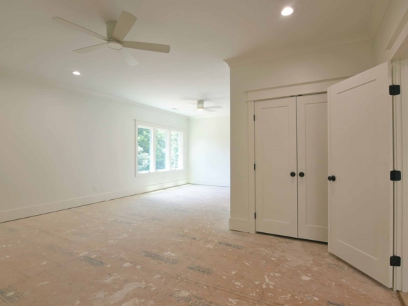 8) Downstairs Primary Bedroom with en suite Bathroom and LARGE Walk in closet with high ceilings! Maximized for storage and function!