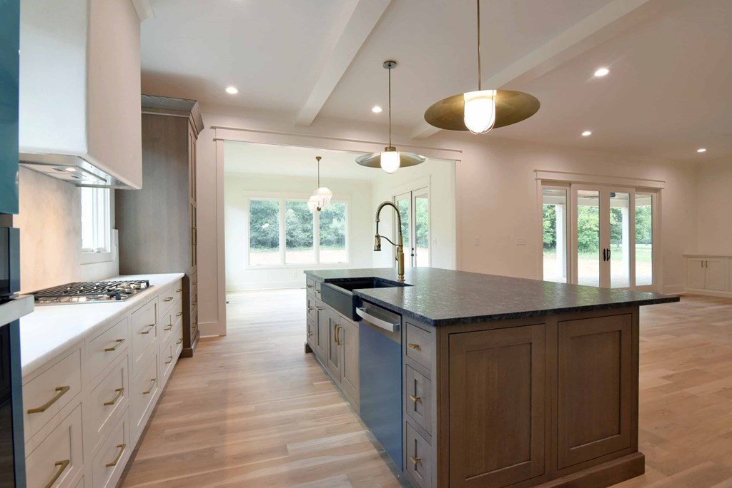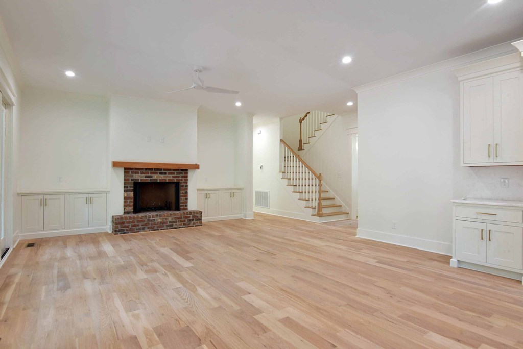 6) Open Floor plan from the Kitchen into the Great Room with brick fireplace and mantle