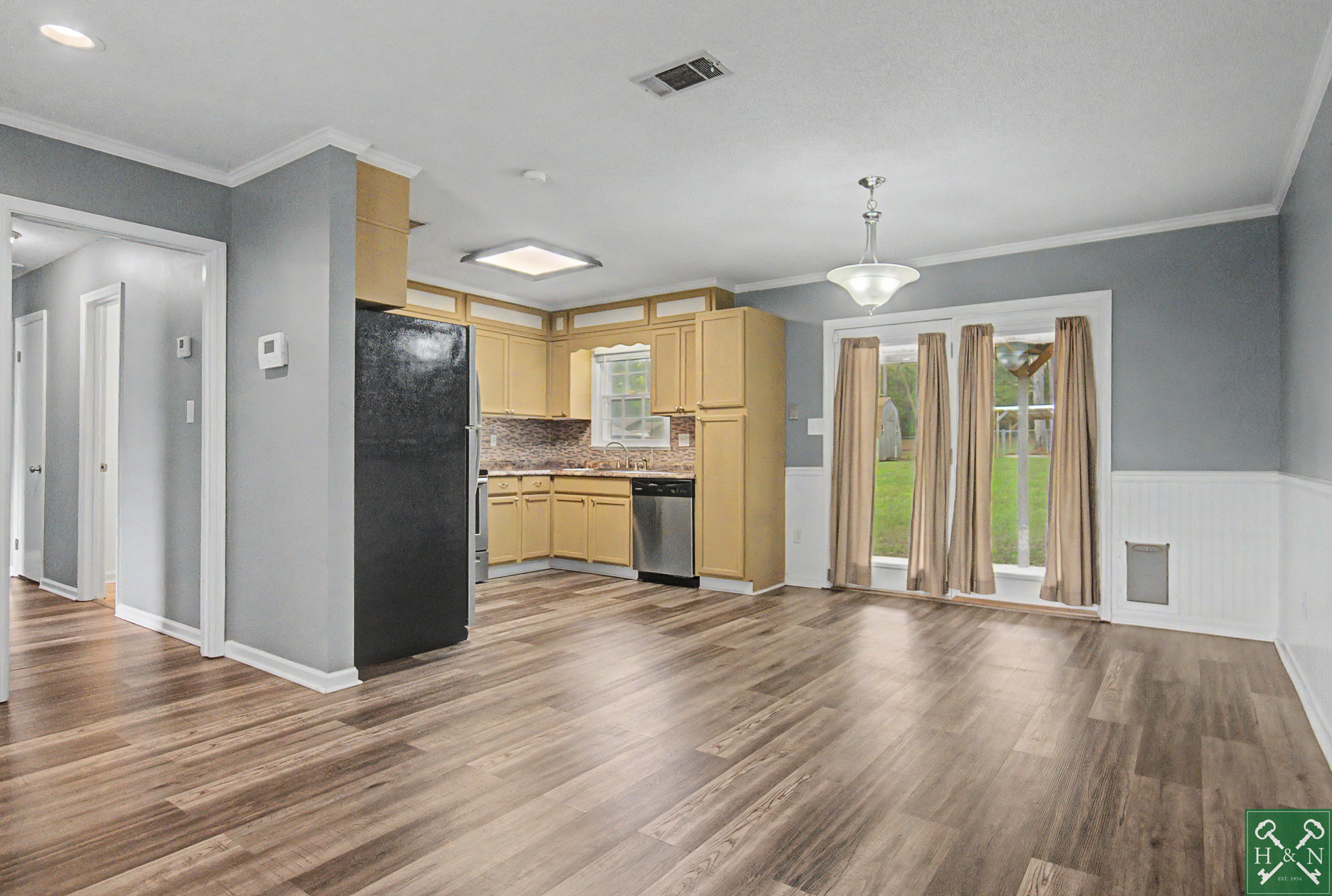 Don’t blink — this charming retreat won’t stay on the market long. Updated and truly move-in ready, this adorable brick home offers effortless one-level living with 3 bedrooms and 2 full baths. An open floor plan welcomes you inside, highlighted by updated flooring, a refreshed kitchen, and beautifully renovated baths that add a modern touch to this classic home. Step out onto the covered back patio and enjoy peaceful views of your fenced yard and the surrounding ±1 acre lot & Storage Shed — a serene setting perfect for relaxing, gardening, and enjoying the wildlife! A one-car garage (with Laundry/ utility room) adds convenience and extra storage. A rare blend of comfort, style, and country calm… this one is a WOW from start to finish!