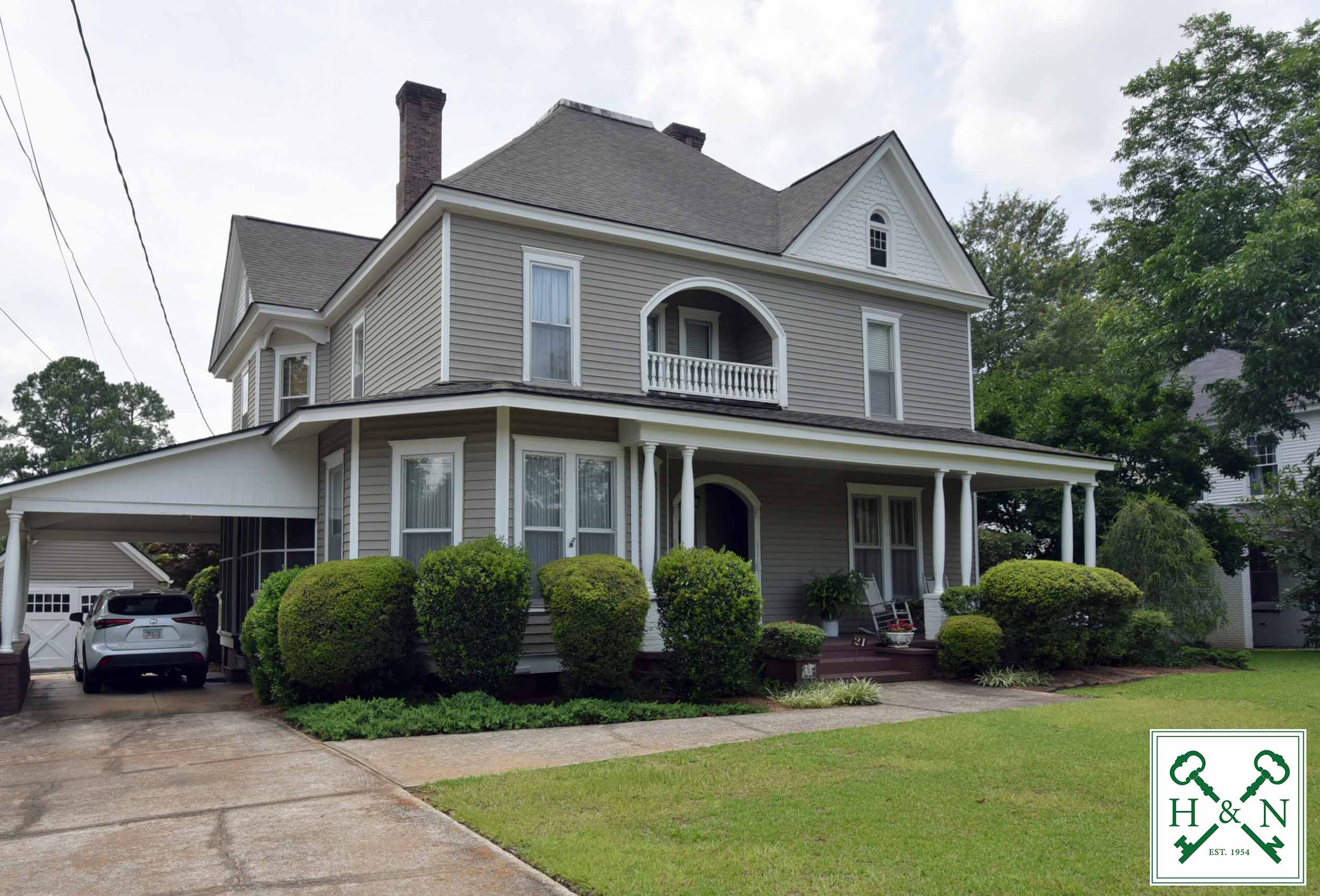 Step back in time while enjoying over 5,294 square feet of beautifully preserved character in this stunning 1880 historic home located in Dawson, GA. Offering 5 bedrooms and 2.5 baths, this grand residence showcases timeless architecture, soaring ceilings, intricate millwork, and gorgeous hardwood floors throughout. The inviting wraparound porch and upper balcony create unforgettable curb appeal, while inside you’ll find expansive living spaces designed for both entertaining and everyday living. A stately dining room sets the stage for gatherings, and the paneled pine den offers a warm, cozy retreat filled with historic charm. The updated kitchen features rich cabinetry, granite countertops, a center island with gas cooktop, and a sunny breakfast room — blending modern function with classic character. The spacious downstairs primary suite provides convenience and comfort, while the additional bedrooms offer flexibility for family, guests, or home office space. Outside, enjoy a large fenced backyard, storage building, and covered parking — rare amenities for a home of this era. Situated on a beautifully maintained lot with mature landscaping, this Dawson landmark offers space, history, and timeless Southern elegance. A truly rare opportunity to own a piece of 1880 craftsmanship with the updates today’s buyers appreciate.