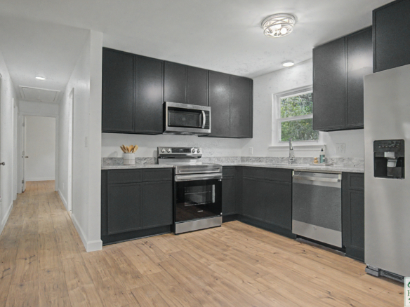 Updated and move-in ready! This home situated 2.1 acres in Mitchell County is your dream come true- just minutes from Albany (Marine Base, P&G, Georgia Pacific, etc.) This home fearures 3 bedrooms and 2 baths and with approximately 1809 square feet. There is plenty of room for a garden, workshop, RV shelter, etc. to complete your dream of living “in the country”. Inside you will find an updated and designer kitchen complete with granite counter tops, new stainless-steel appliances, and abundant cabinetry. Also, the entire home has new vinyl plank flooring, new light fixtures, and it has been freshly painted throughout. You will love the size of the Laundry Room (room for extra appliances, a drop zone for the family, etc)! The Primary bedroom has a private bathroom with new fixtures and a HUGE tiled shower. The other two bedrooms have access to the hall bathroom The oversized Den/Bonus room is just the spot for the family to gather. Also, the open floor plan of the Living Room/Dining/Kitchen is very inviting for family time. Make plans today to preview because this one won’t last long. This property is eligible for USDA financing also! Call the selling sisters and get packing!!