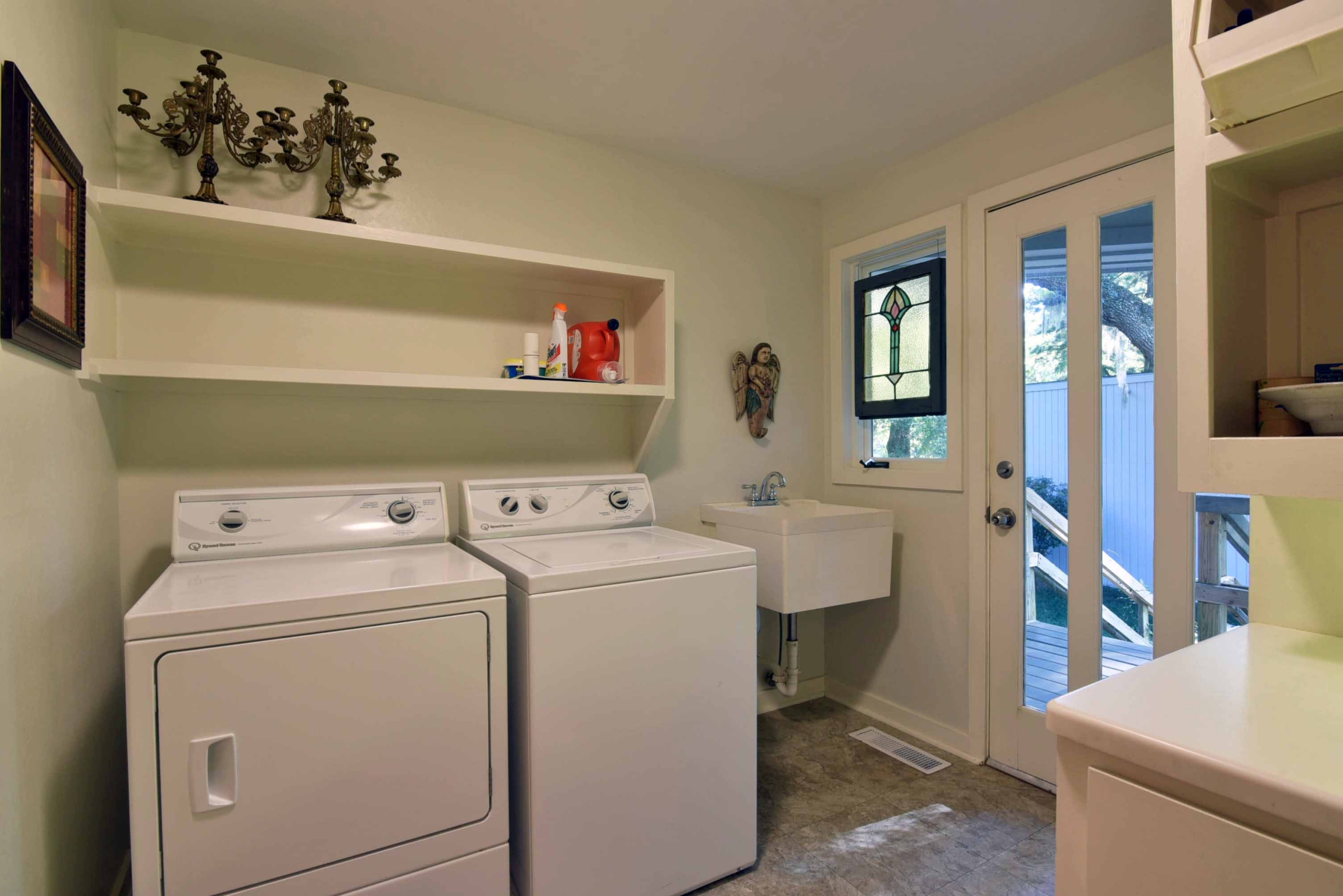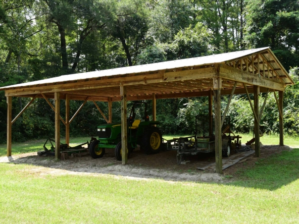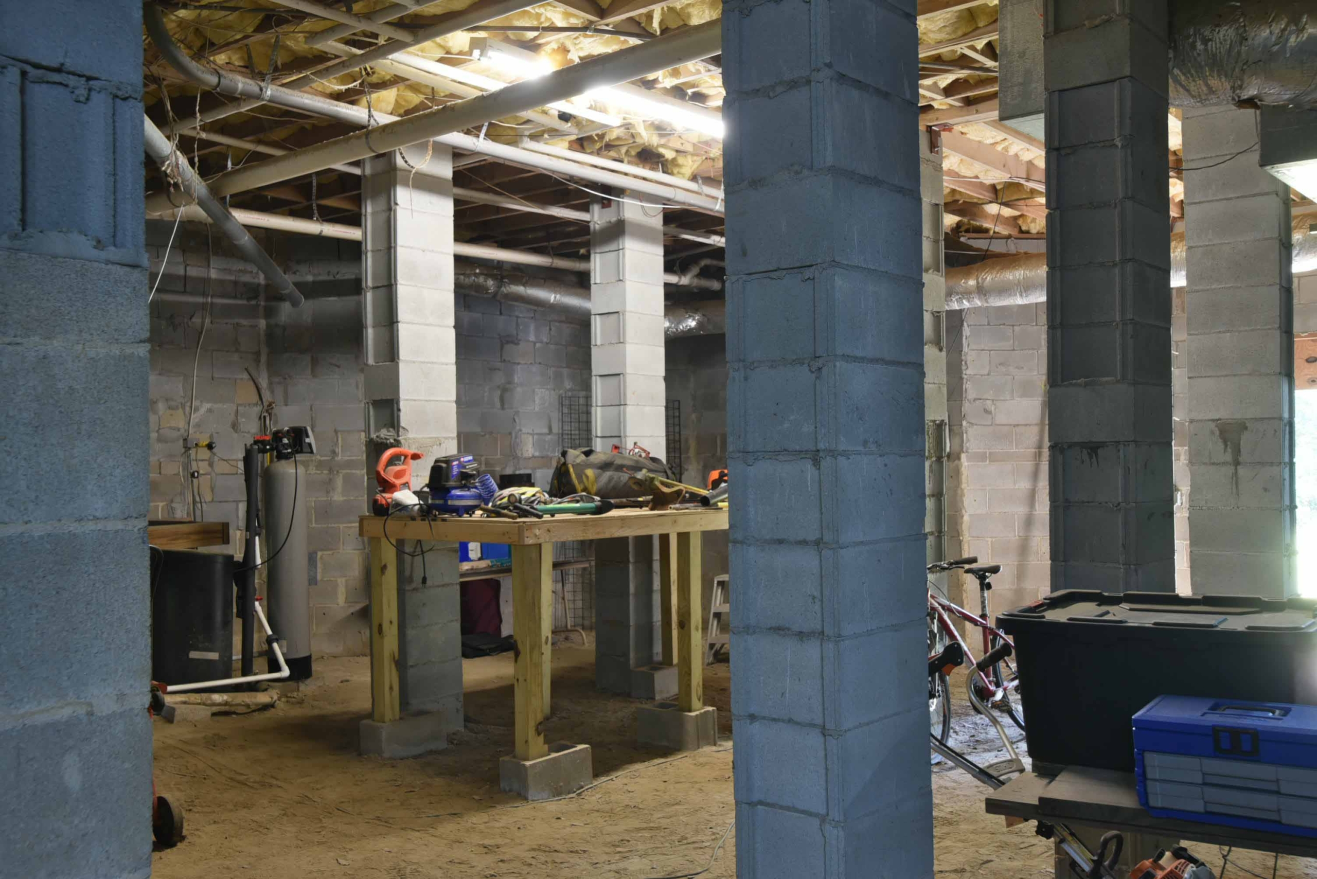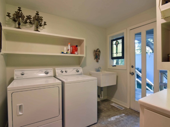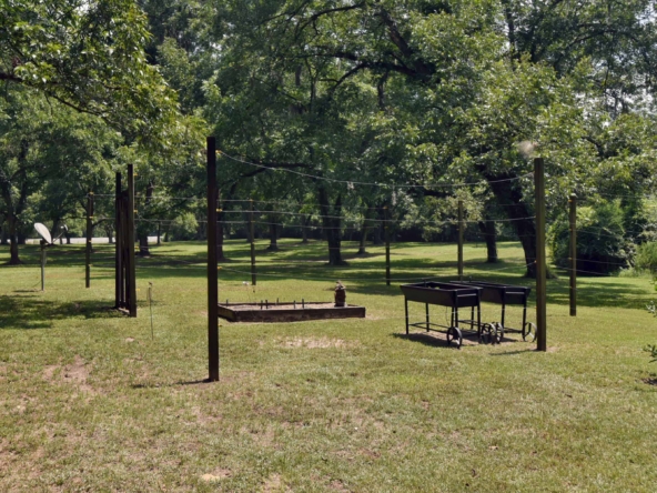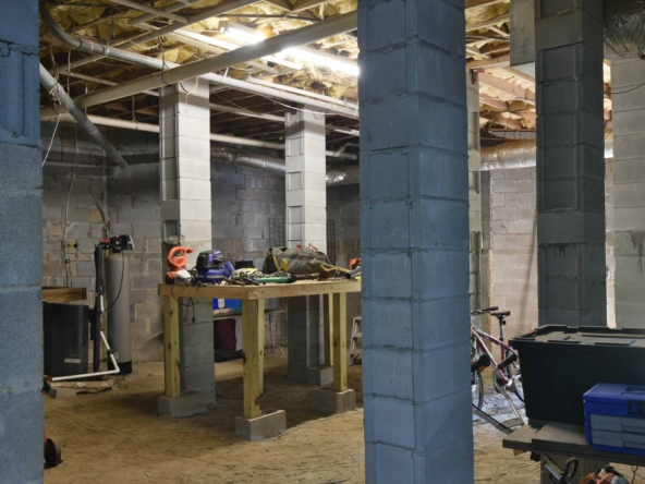 The home’s lower level features an unfinished basement offering extensive storage space, with endless possibilities for a workshop, wine cellar, or storm shelter. Outside, a two-car carport includes two large storage closets with built-in tool racks and shelving, providing abundant space for organization and utility.